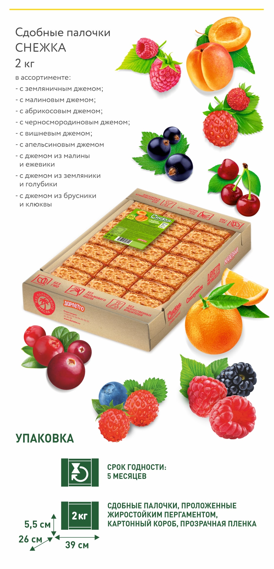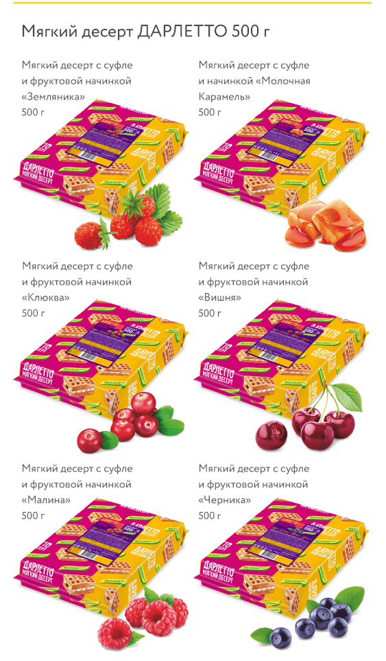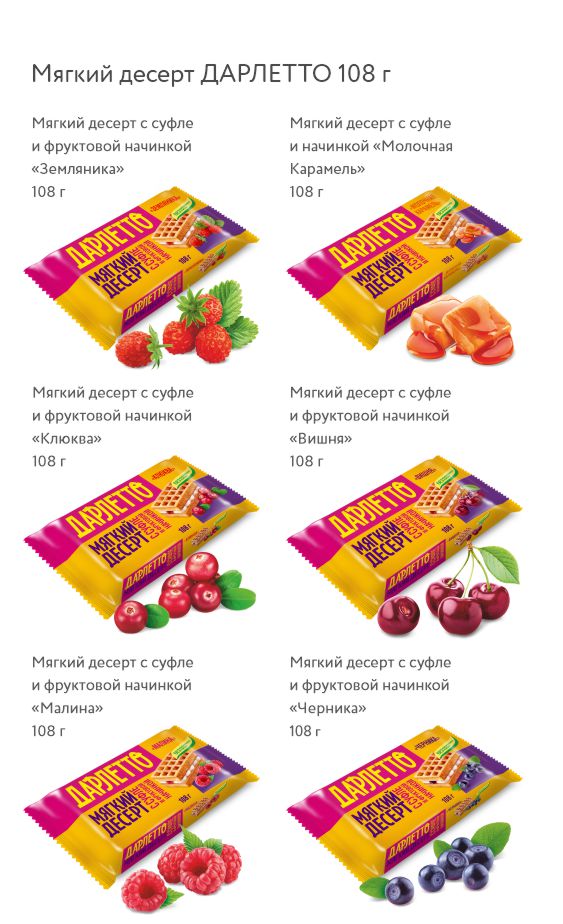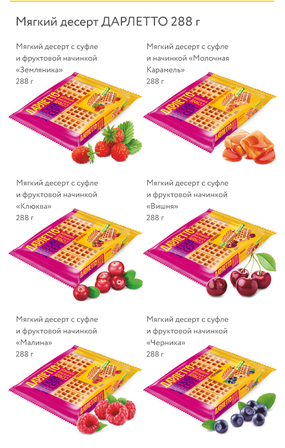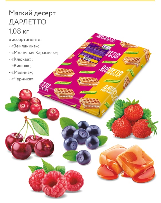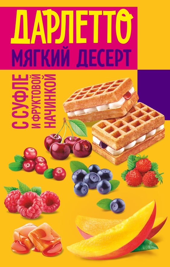 Мягкий десерт ДАРЛЕТТО — это настоящая философия сладкой жизни: нежность классических десертов из теста дополнятся взрывом ярких вкусов фруктовых и карамельной начинок.
