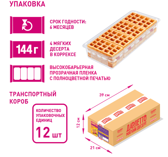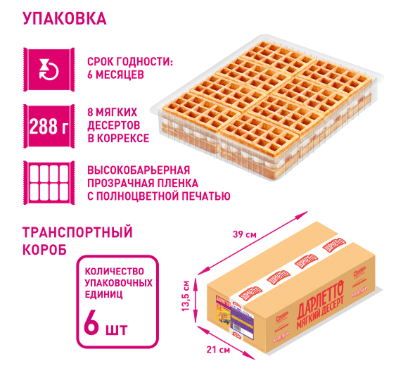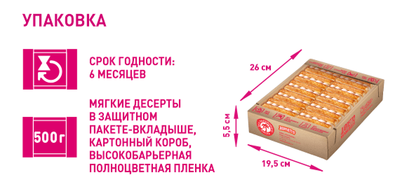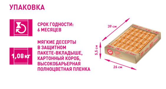 Благодаря новой качественной упаковке десерты остаются мягкими, свежими и ароматными.