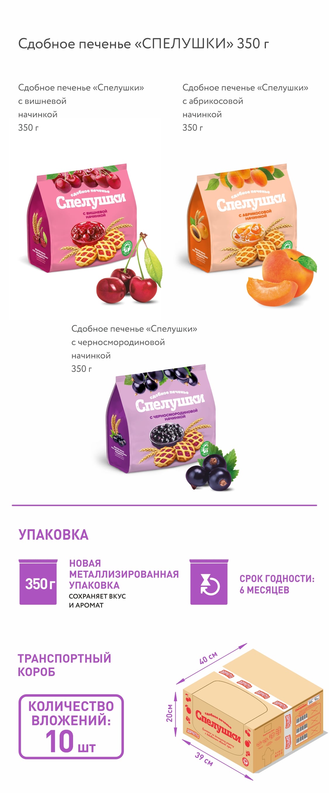 Сдобное печенье Спелушки – это рассыпчатое тесто, фруктовая начинка и неповторимый аромат начинок собственного производства - идеальный выбор для любителей домашней выпечки.